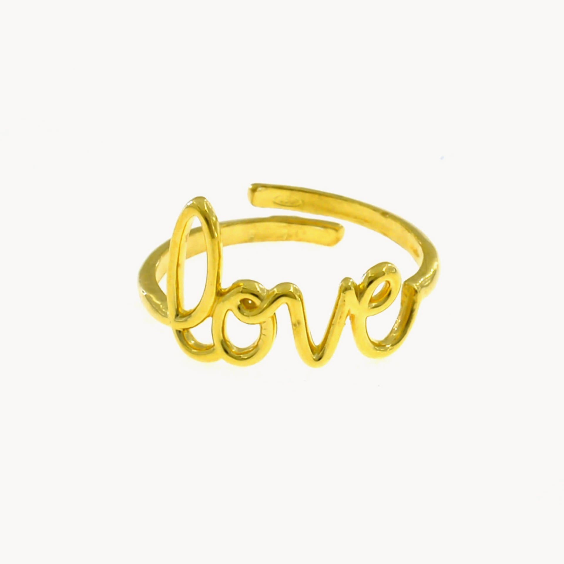 Questo anello ha una forma di scritta "love" che lo rende perfetto per celebrare l'amore e per fare un regalo romantico. La scritta è ben proporzionata e ben leggibile, rendendo l'anello facilmente riconoscibile. L'anello è regolabile in argento 925, quindi si adatta perfettamente a qualsiasi dito, rendendolo una scelta perfetta per chi vuole mostrare i propri sentimenti in modo elegante. E' un anello moderno ed elegante, perfetto per essere indossato ogni giorno o per un'occasione speciale.