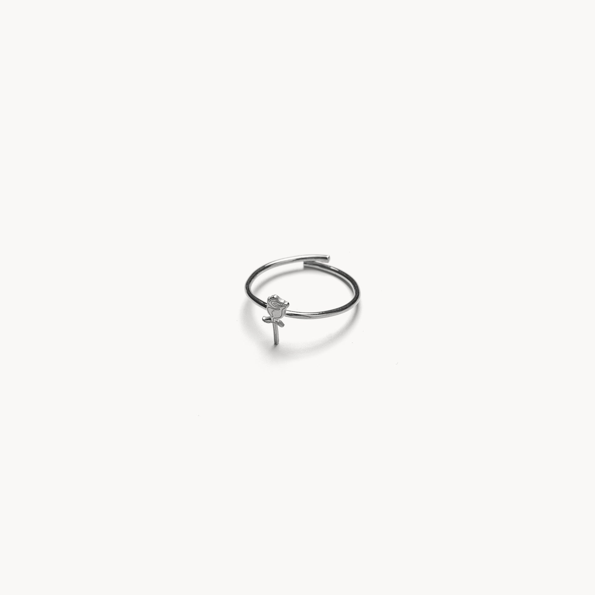 L'anello descritto è composto da una fascia sottile con una rosa in rilievo. È realizzato in argento 925, una lega composta al 92,5% di argento puro e al 7,5% di altri metalli. La misura dell'anello è regolabile, il che significa che può essere adattato a diverse dimensioni del dito. La rosa è un fiore simbolo di amore e passione. Prodotto free nichel.