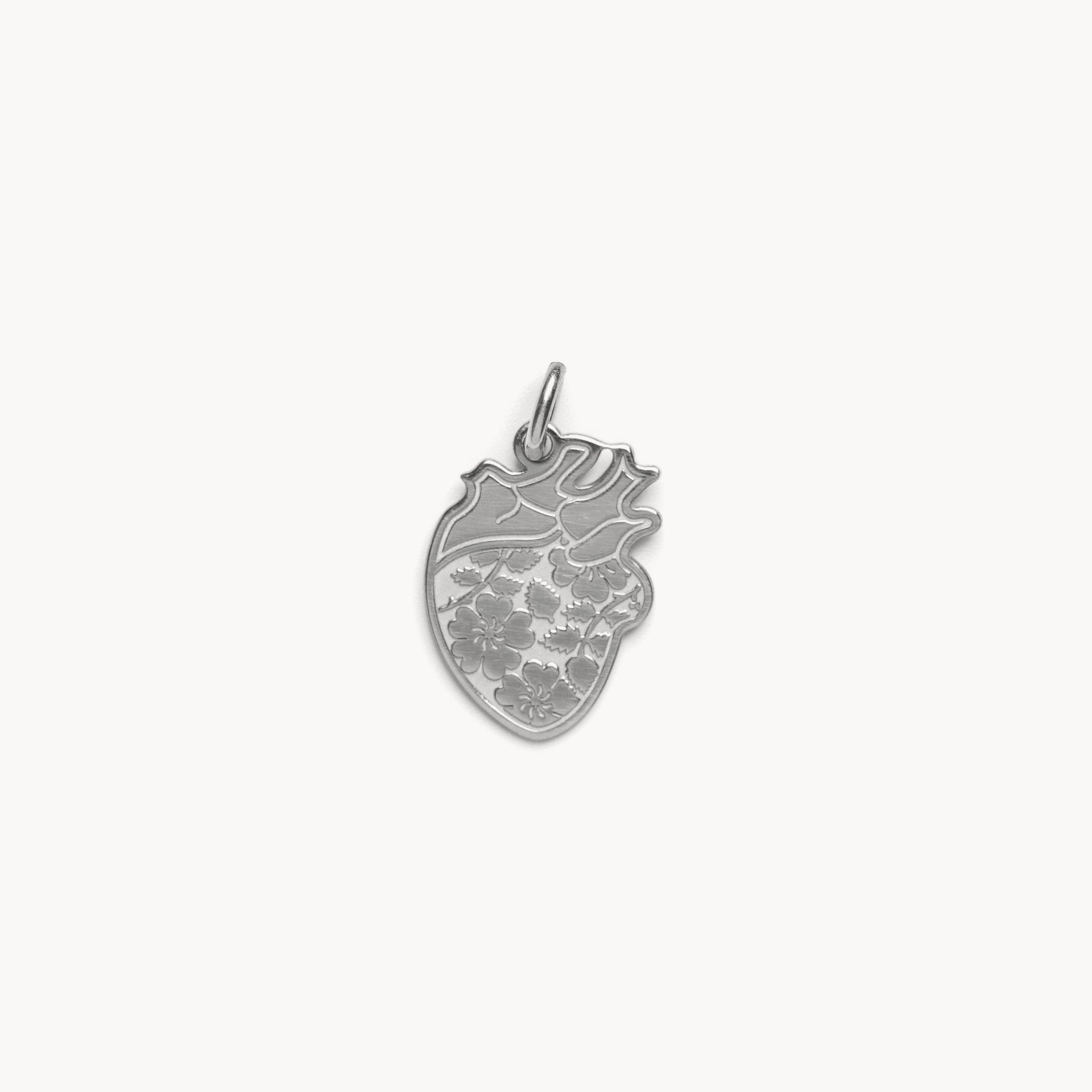 Il ciondolo rappresenta un cuore con una delicata rosa incastonata al centro. Il cuore è finemente lavorato con una texture a forma di petali, mentre la rosa è realizzata con una tecnica di incisione che la rende realistica e dettagliata. Il ciondolo è realizzato con argento 925 di alta qualità, che lo rende resistente e duraturo.