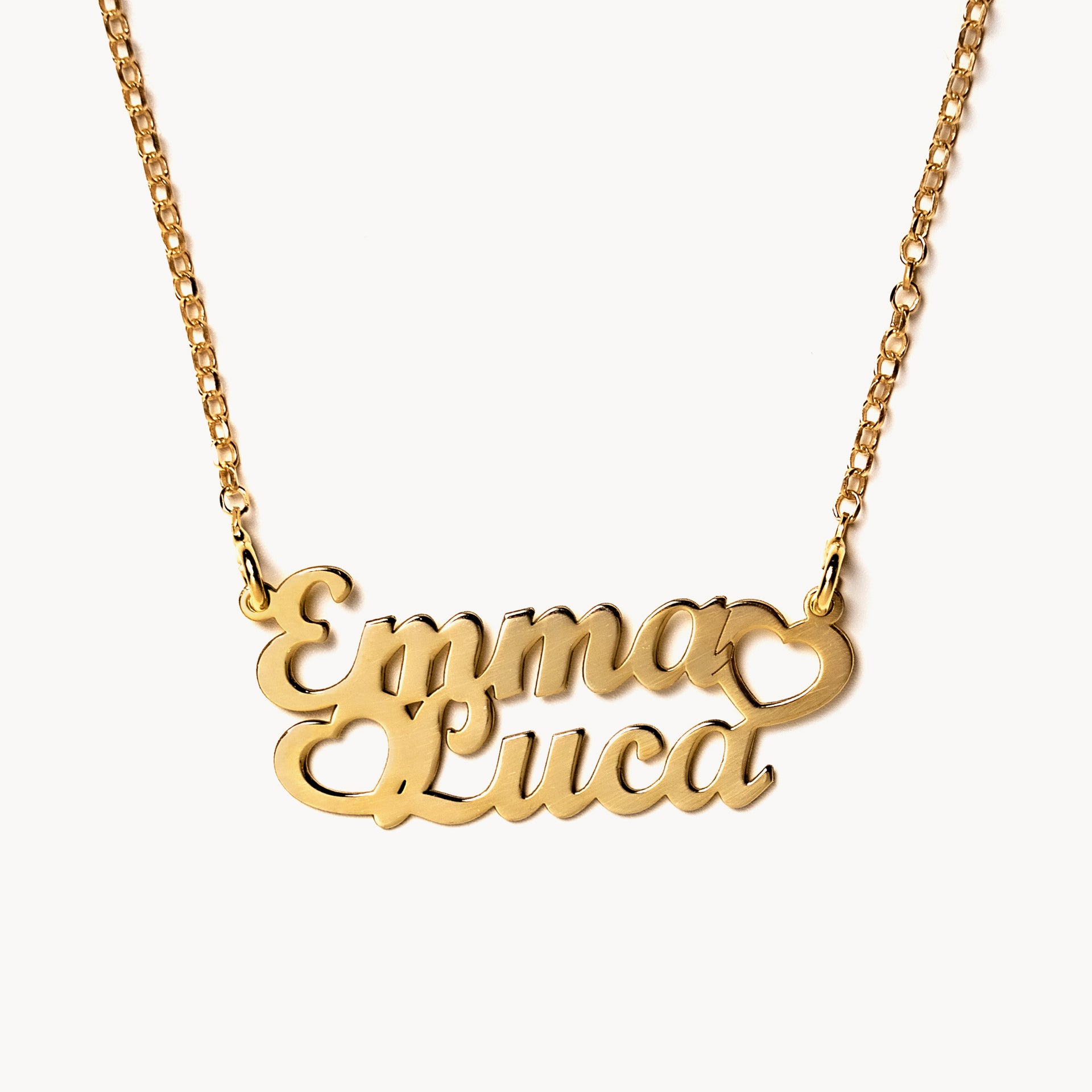 La catenina è realizzata con argento 925 di alta qualità che la rende resistente e duratura. I ciondoli sono personalizzabili con i nomi dei tuoi cari e possono essere ordinati in una varietà di font e dimensioni per adattarsi alle tue preferenze. Questa collana è perfetta come regalo per celebrare un'amicizia, una famiglia o un amore. La lunghezza della catenina è regolabile per adattarsi perfettamente a qualsiasi outfit ed occasione, e rende questa collana unica e significativa.