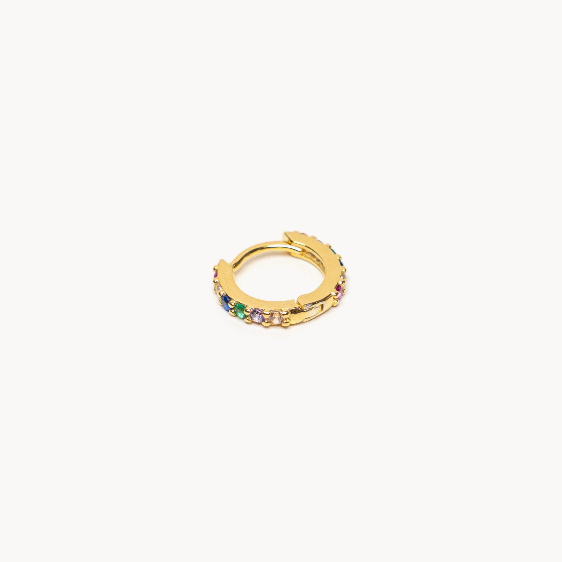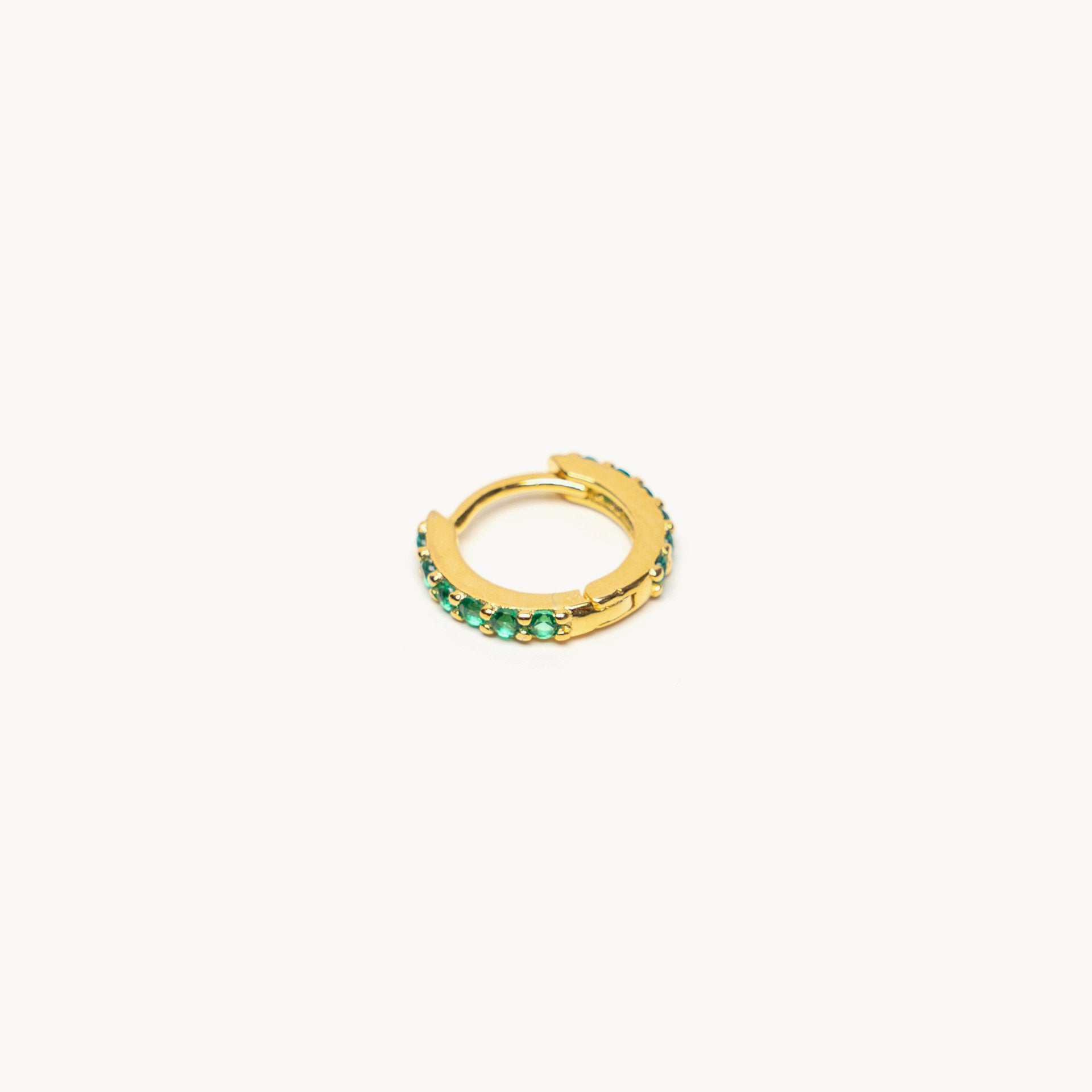 Sono orecchini in argento al 92,5% (placcato oro) a cerchio con chiusura a scomparsa, una chiusura molto comoda poiché l'amo si introduce all'interno della canna degli orecchini. Il placcato oro conferisce all’orecchino un aspetto brillante e prezioso. È composto da pietre preziose incastonate (zirconi) disponibili in vari colori secondo le preferenze dell’utente. Prezzo singolo orecchino. Prodotto free nichel.