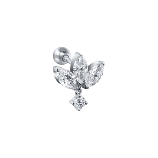 L'orecchino proposto è un piercing in argento 925 placcato oro con un piccolo lotus. L'argento 925 è una lega di argento composta da 92,5% di argento puro e 7,5% di altri metalli. La placcatura in oro è un rivestimento sottile di oro sulla superficie dell'argento che conferisce un aspetto dorato all'orecchino. Adatto per Flat, Conch e Tragus.